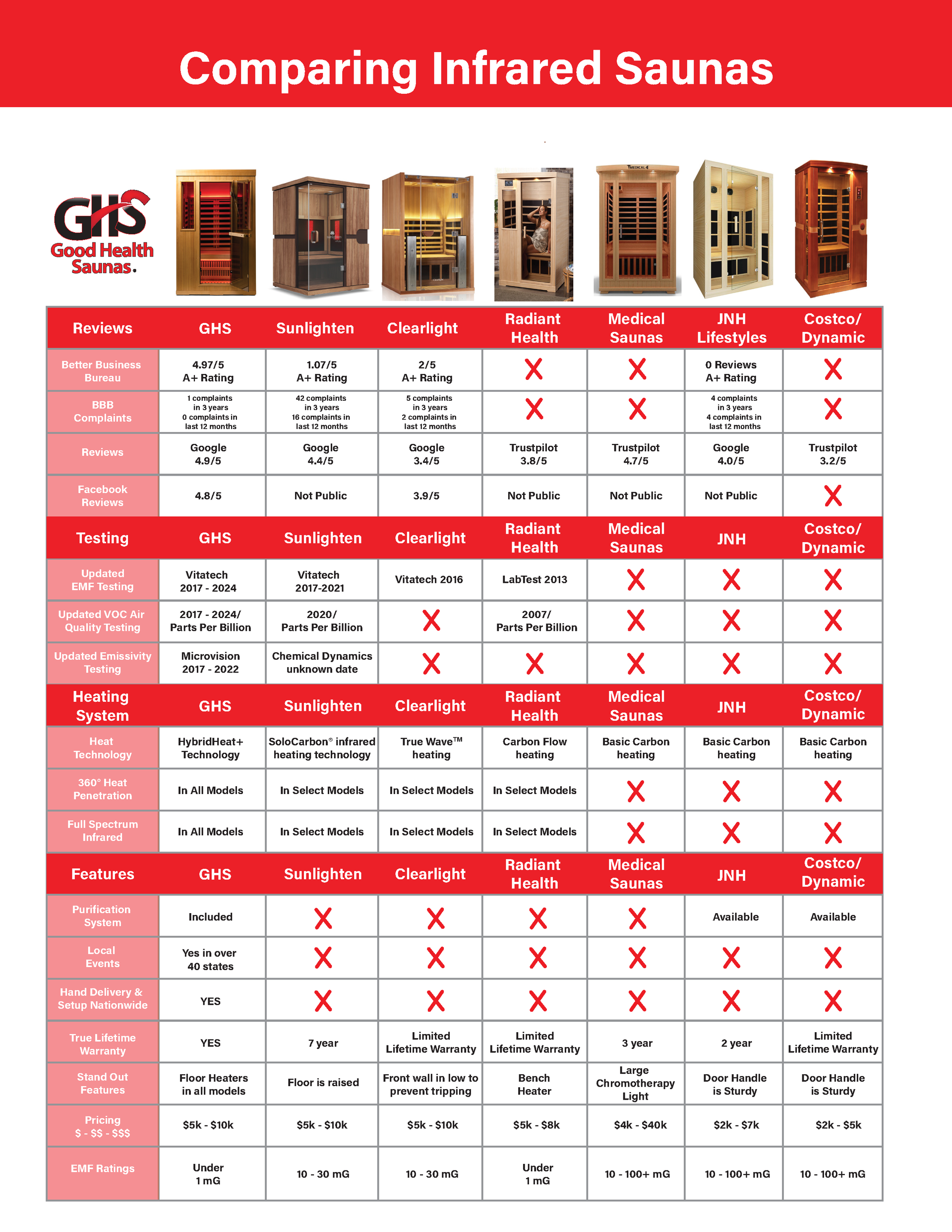 Good Health Saunas has always allowed public Facebook reviews! We take pride in a 4.9 Star since its creation in 2013!